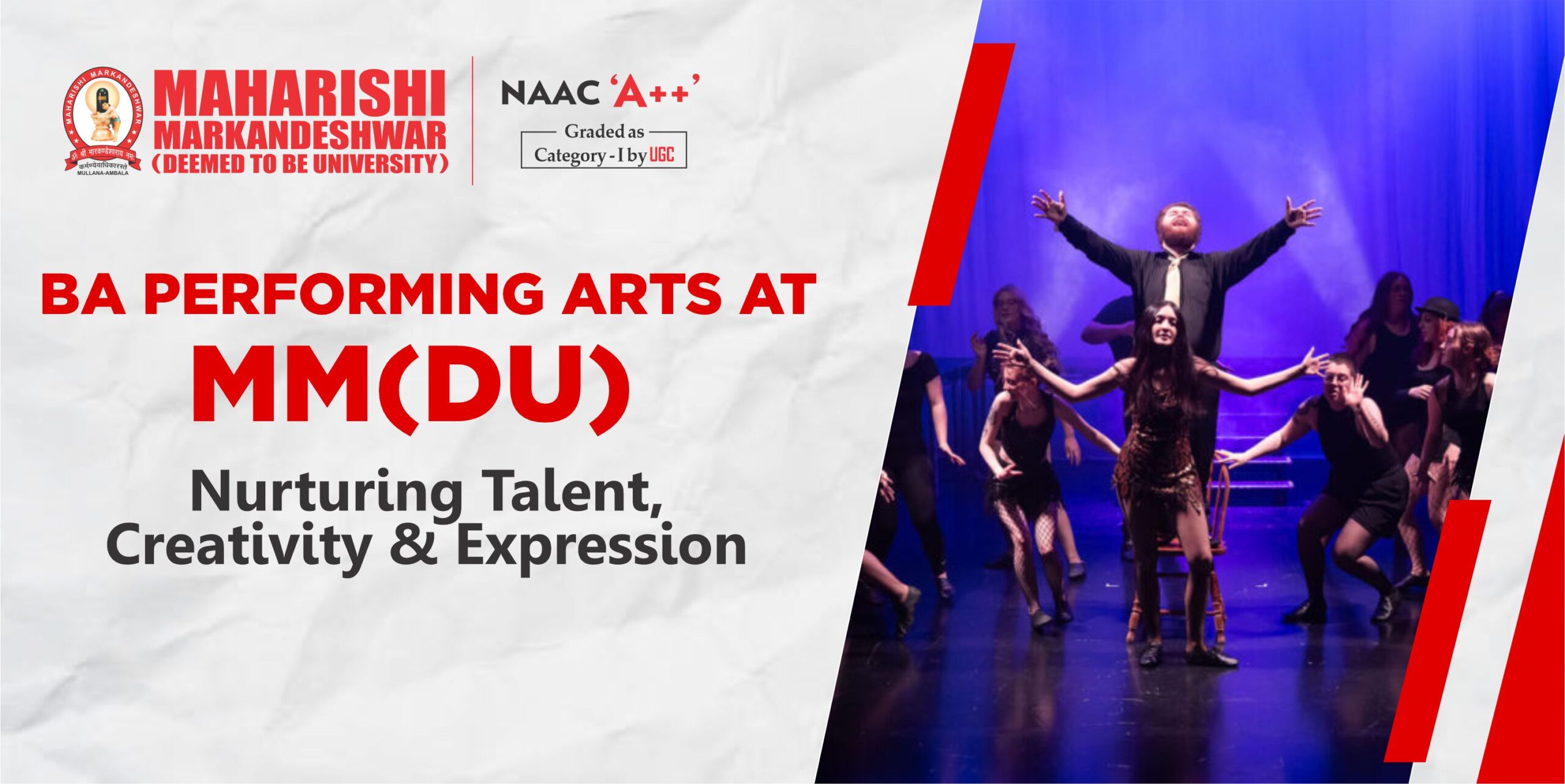 Maharishi Markandeshwar (Deemed to be University)’s BA in Performing Arts is a creative ecosystem that grooms versatile artists prepared for the realities of stage, screen and cultural leadership. Rooted in rigorous training and practical exposure, the programme blends classical technique with contemporary practice, encouraging students to discover a personal voice while building the professional skills necessary to succeed in a competitive arts landscape.