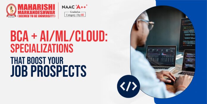 In an age where every business is going digital and technology is rapidly redefining how we live, learn and work; choosing the right undergraduate degree has never been more important. The Bachelor of Computer Applications (BCA) is one of the most sought-after programs for students passionate about computing, software, and the digital world. But at MM(DU), the BCA journey doesn’t stop at foundational learning. It opens up doors to powerful specializations in Artificial Intelligence (AI), Machine Learning (ML) and Cloud Computing ensuring that students graduate not just with a degree, but with a sharp edge in the job market.