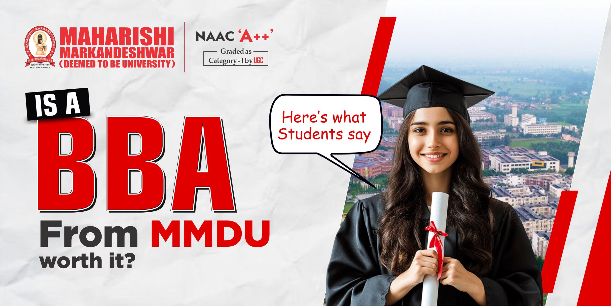 Based on what students emphasize, yes… the BBA from MM(DU) is worth it for self-starters who want structured training, hands-on projects, and a credible pathway to either entry-level business roles or early-stage entrepreneurship. The university’s signals outcome-based curriculum, corporate collaborations, incubation and placement processes… line up with what recruiters expect from undergrad business talent today. Visit this link for more details of BBA program from MM (DU) https://www.mmumullana.org/course/bba