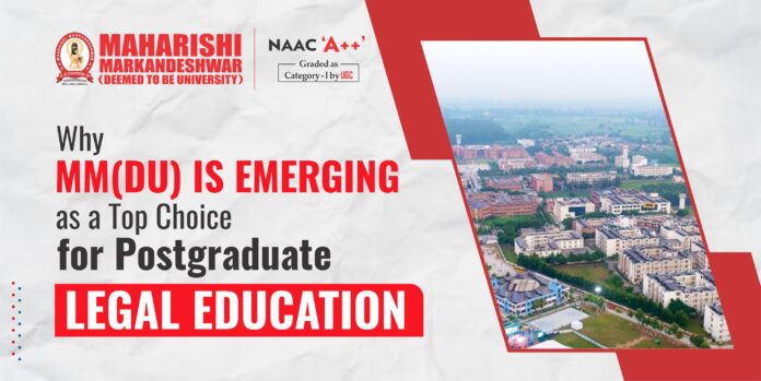 MM(DU) (Maharishi Markandeshwar (Deemed to be University)) is increasingly being seen as a strong destination for postgraduate legal education especially for students who want an LLM experience that is not only classroom-heavy but also research-driven, skill-oriented and aligned with today’s legal market realities. In an era where legal practice is being reshaped by technology, policy churn, corporate compliance, and cross-border work, a postgraduate law programme must offer more than “advanced theory.” It must create specialists who can think critically, write persuasively, research rigorously, and apply the law confidently in real-world contexts. This is where MM(DU) is steadily building its reputation.
